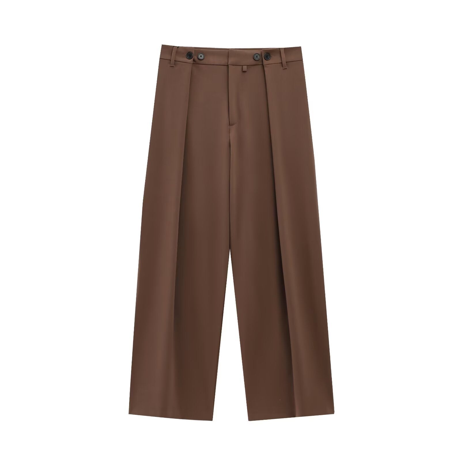 Solid Color Single-breasted Blazer & High-waisted Pants Set -