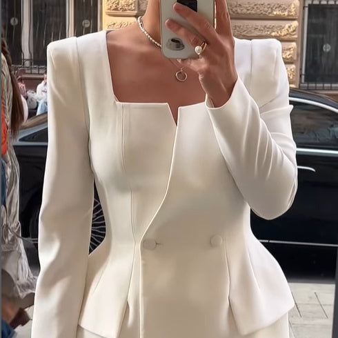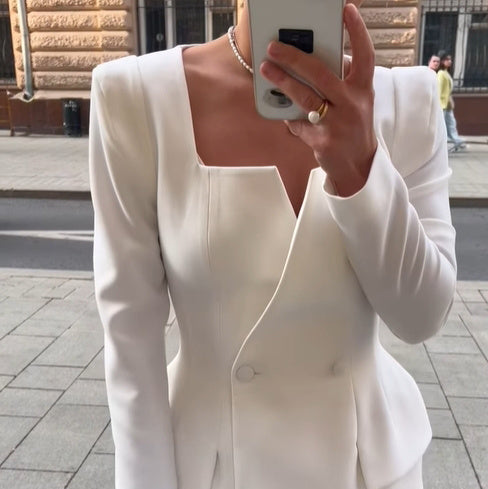 Solid Color Commute Blazer Collar Coat Waist-slimming Dress Suit -