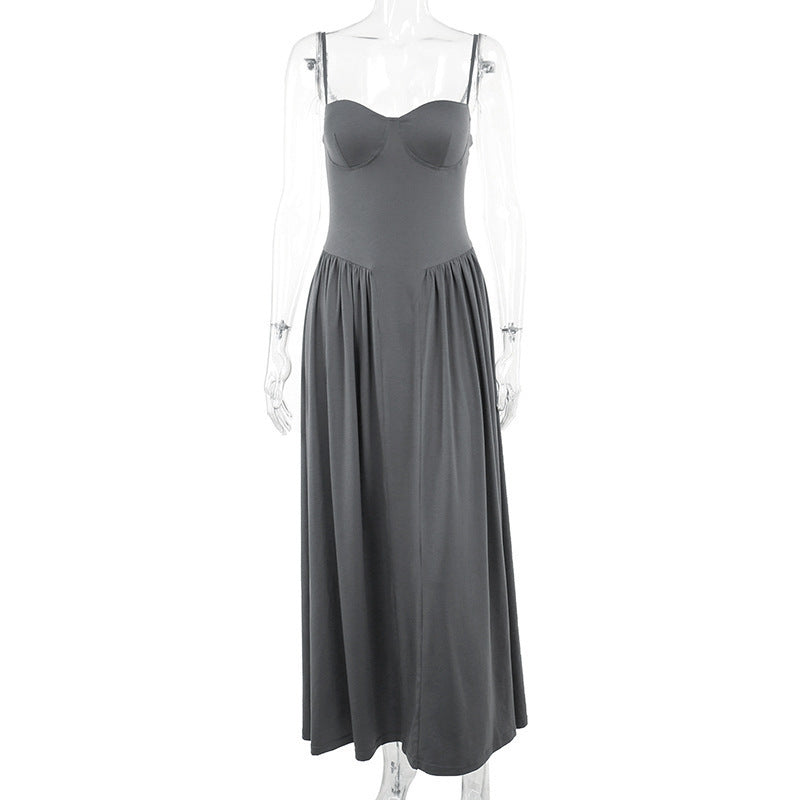 Women's Solid Color Sleeveless Sling Square Collar Backless Dress -