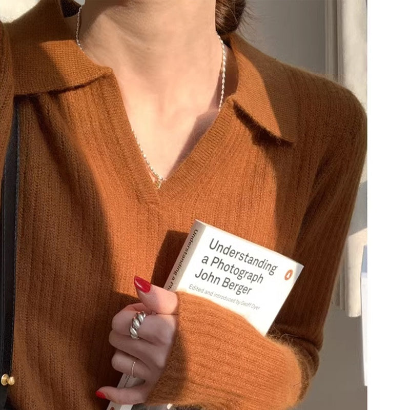 Plus Size Polo Collar Knitwear Retro Soft Glutinous Sweater Bottoming Shirt -