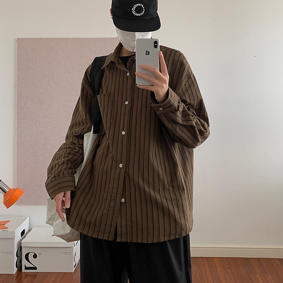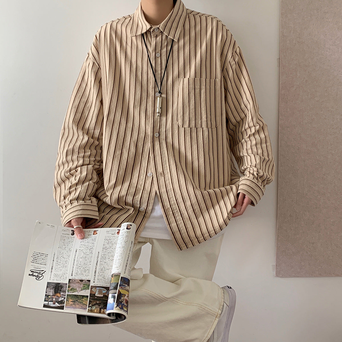 Long Sleeve Lapel Shirt Men's Loose Button Cardigan Sshirt Top Mens Clothing -