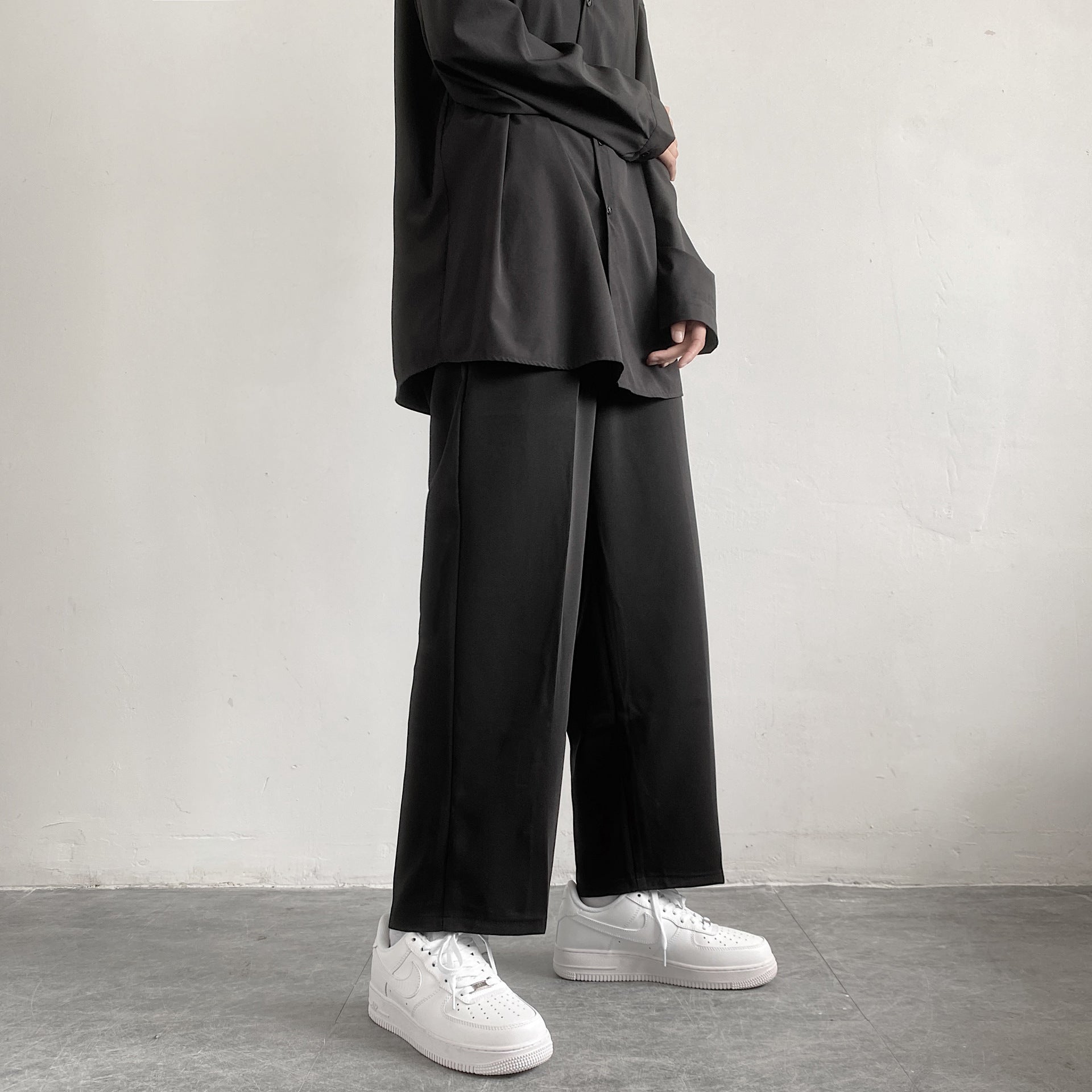 Trendy Wide Leg Drooping Straight Loose Casual Trousers Small Suit Pants Men -