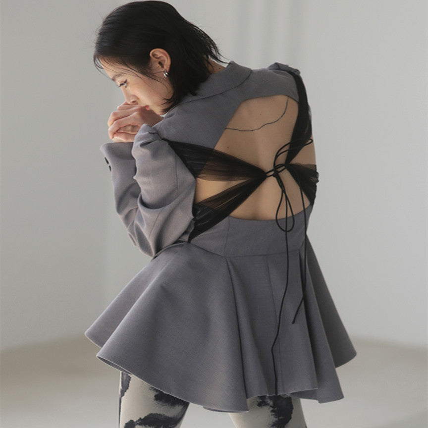 Women's Backless Lotus Leaf Hem Suit Waist Slim Coat -